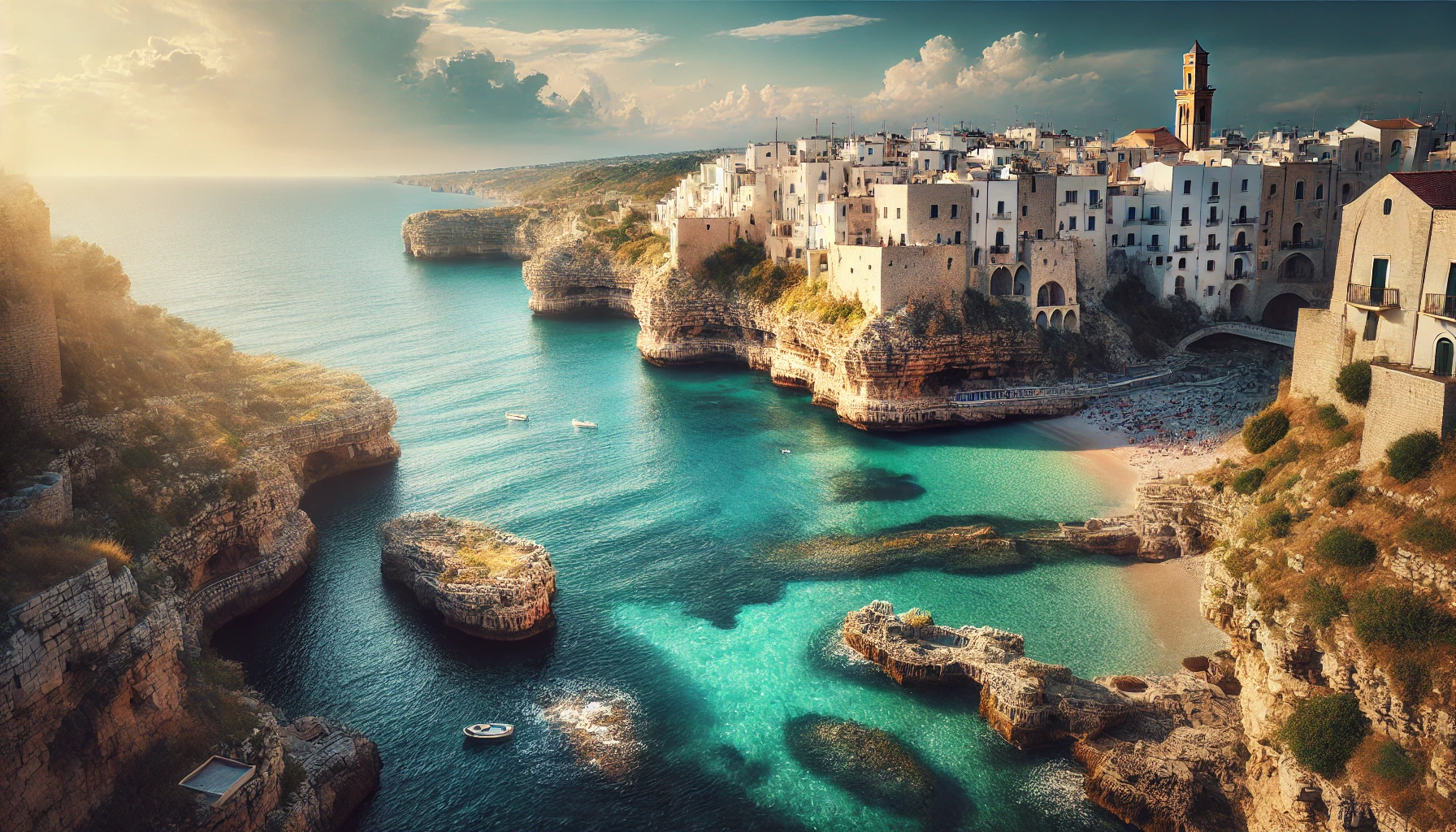 이탈리아 남부에 위치한 폴리냐노 아 마레는 절벽 위에 자리 잡은 마을로, 에메랄드빛 바다와 하얀 집들이 환상적인 조화를 이룹니다. 현지 요리를 맛보며 여유로운 시간을 보내기에 안성맞춤입니다.