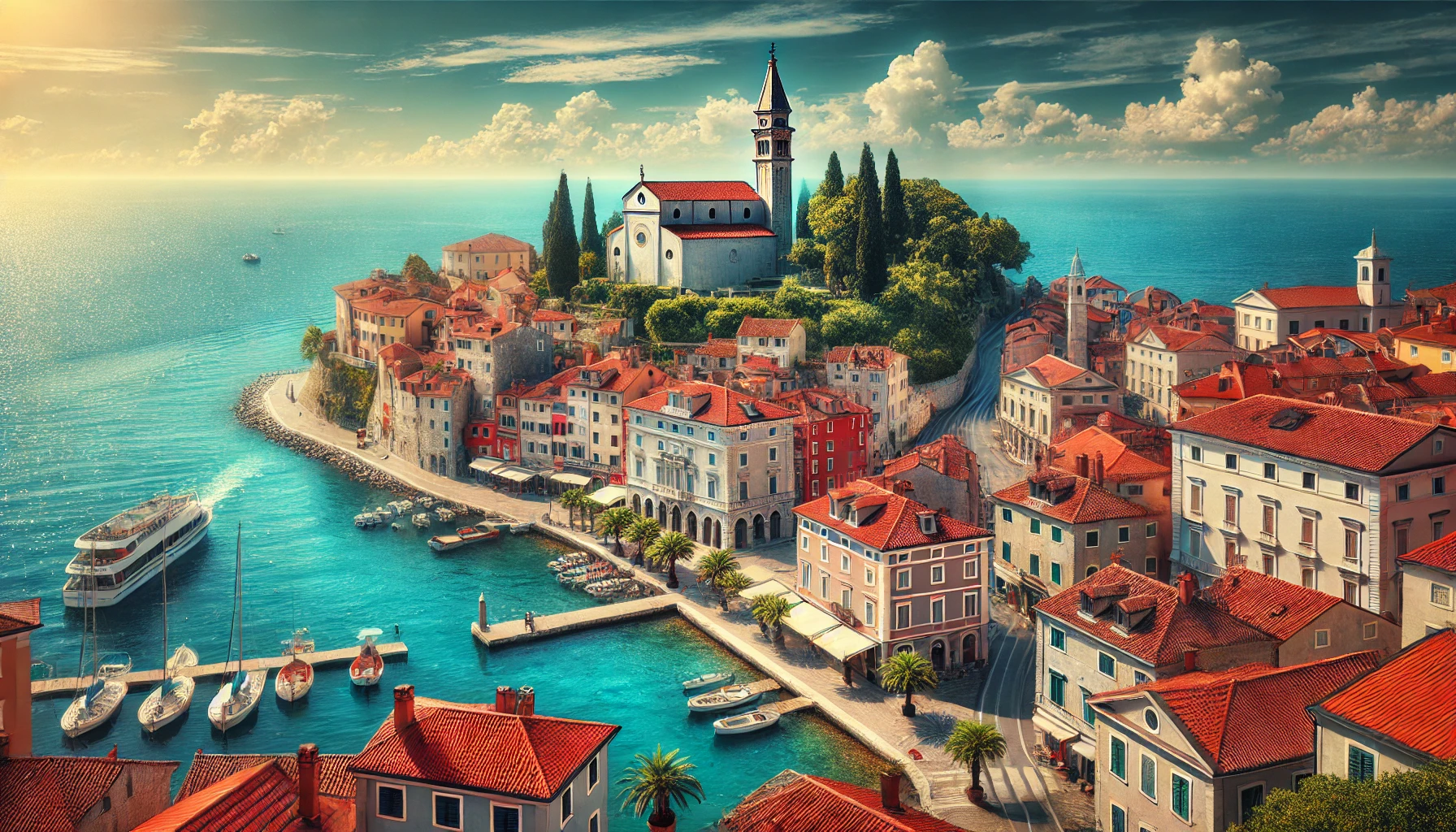 지중해를 품은 작은 항구도시 피린은 슬로베니아의 보석 같은 장소입니다. 붉은 지붕과 파란 바다가 어우러진 이곳은 크로아티아와 인접해 있어 함께 여행하기 좋습니다.